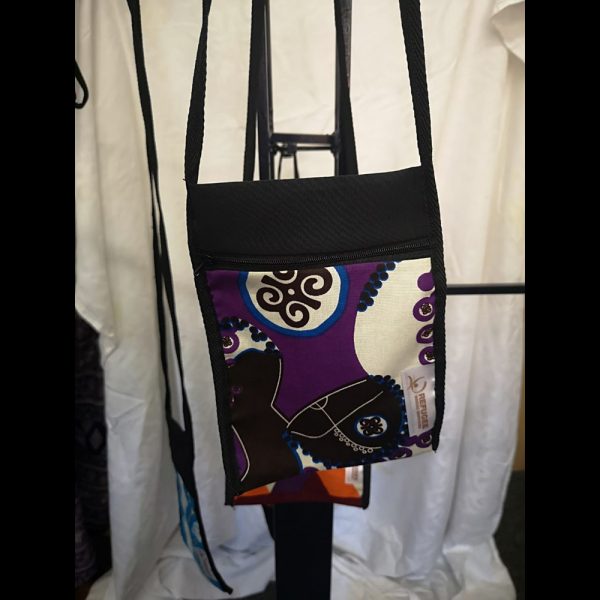 Multipurpose mix-print sling bags. Hand crafted with authentic African design. Please email admin@refugeesocialservices.co.za to order.